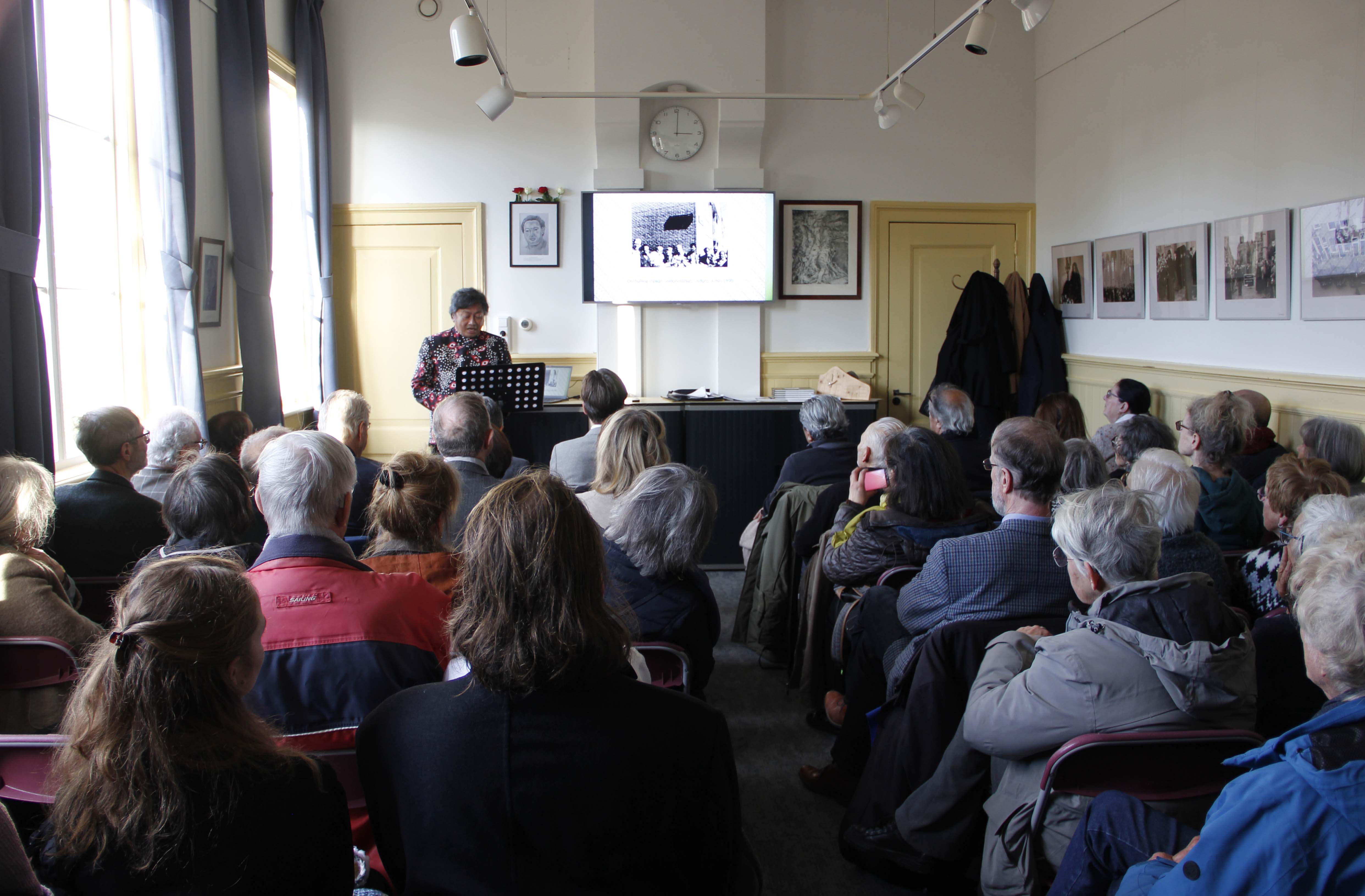 Marian Weevers een lezing. Marian is vrijwilligster in de onderzoekgroep van onze Stichting.