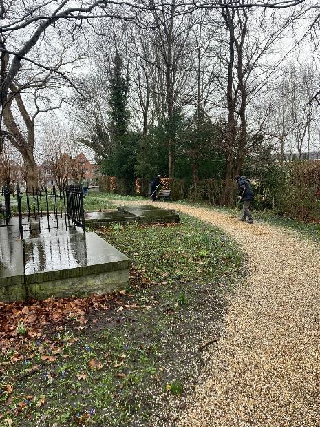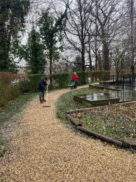 Begin maart heeft onze zeer verdienstelijke groenploeg tientallen kruiwagens grind aangebracht op de paden van de begraafplaats. Hiermee ziet alles er weer schitterend uit, klaar voor het nieuwe buitenseizoen.