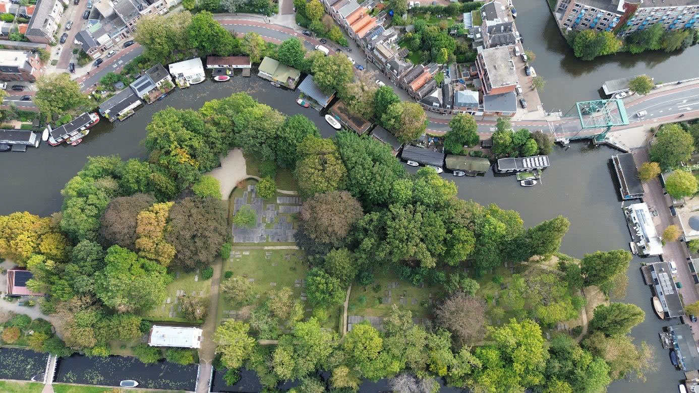 stadswateren. Aan de zonnige Singelkant van de Begraafplaats Groenesteeg varen veel boten en