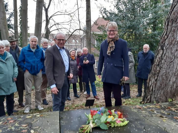 In november was het 200 jaar geleden dat de historicus Fruin werd geboren. Professor Henk te Velde, de bezetter van de Fruinleerstoel aan de Leidse universiteit, hield een interessante lezing over deze pionier van de moderne vaderlandse geschiedenis. Na afloop van de lezing werd door hem en onze voorzitter Lodewijk Kallenberg op het graf van Fruin een bloemstuk gelegd.
