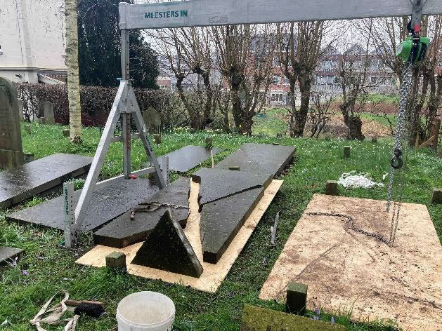 Het verval op de begraafplaats gaat geleidelijk, maar is onvermijdelijk. De laatste grote restauratie vond plaats in 2014/2015; die daarvoor stamde uit 1993/1995. Er is besloten om niet meer zolang te wachten, maar regelmatiger kapotte zerken te restaureren. Onlangs, in maar 2024 is een aantal graven onder handen genomen. Op deze wijze hopen wij nog beter met het funerair erfgoed op onze historische begraafplaats om te gaan.